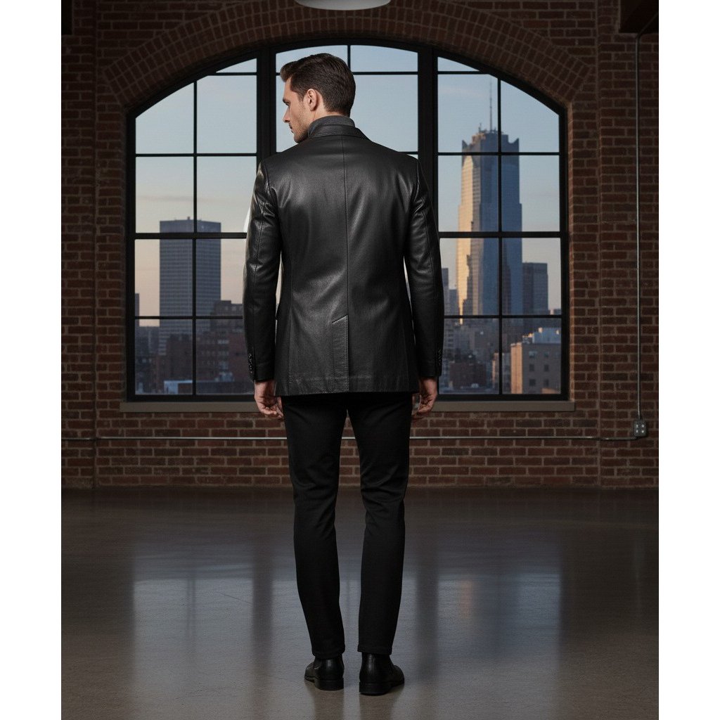 Midnight Noir Black Leather Blazer – Modern Elegance Redefined