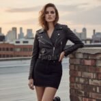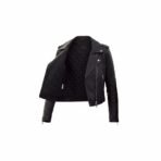 Women’s Black Leather Moto Crop Jacket – Classic Biker Style with Belted