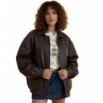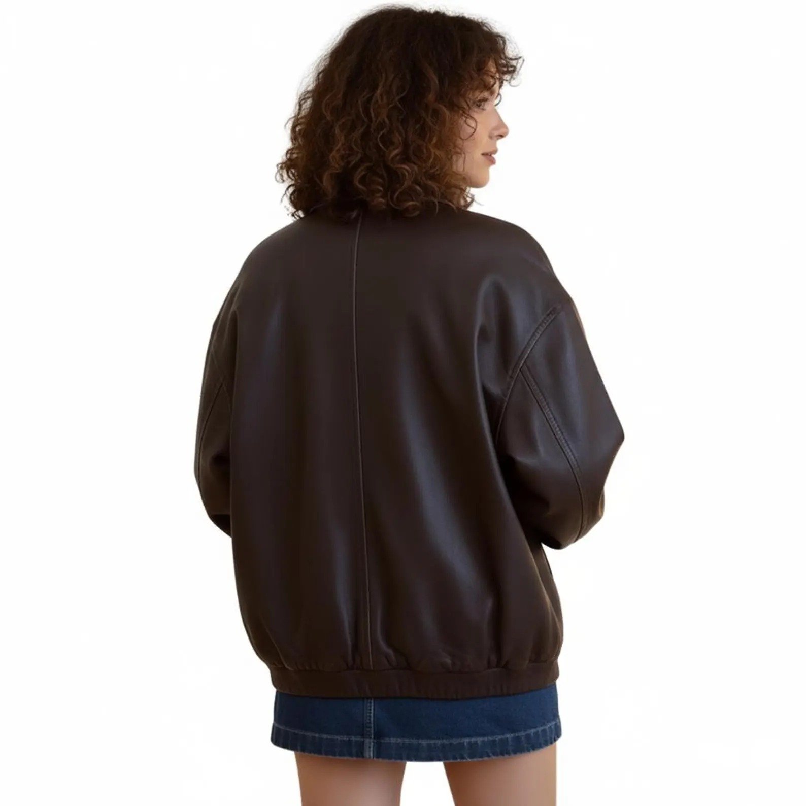 Women’s Brown Leather Oversized 90s Bomber Jacket